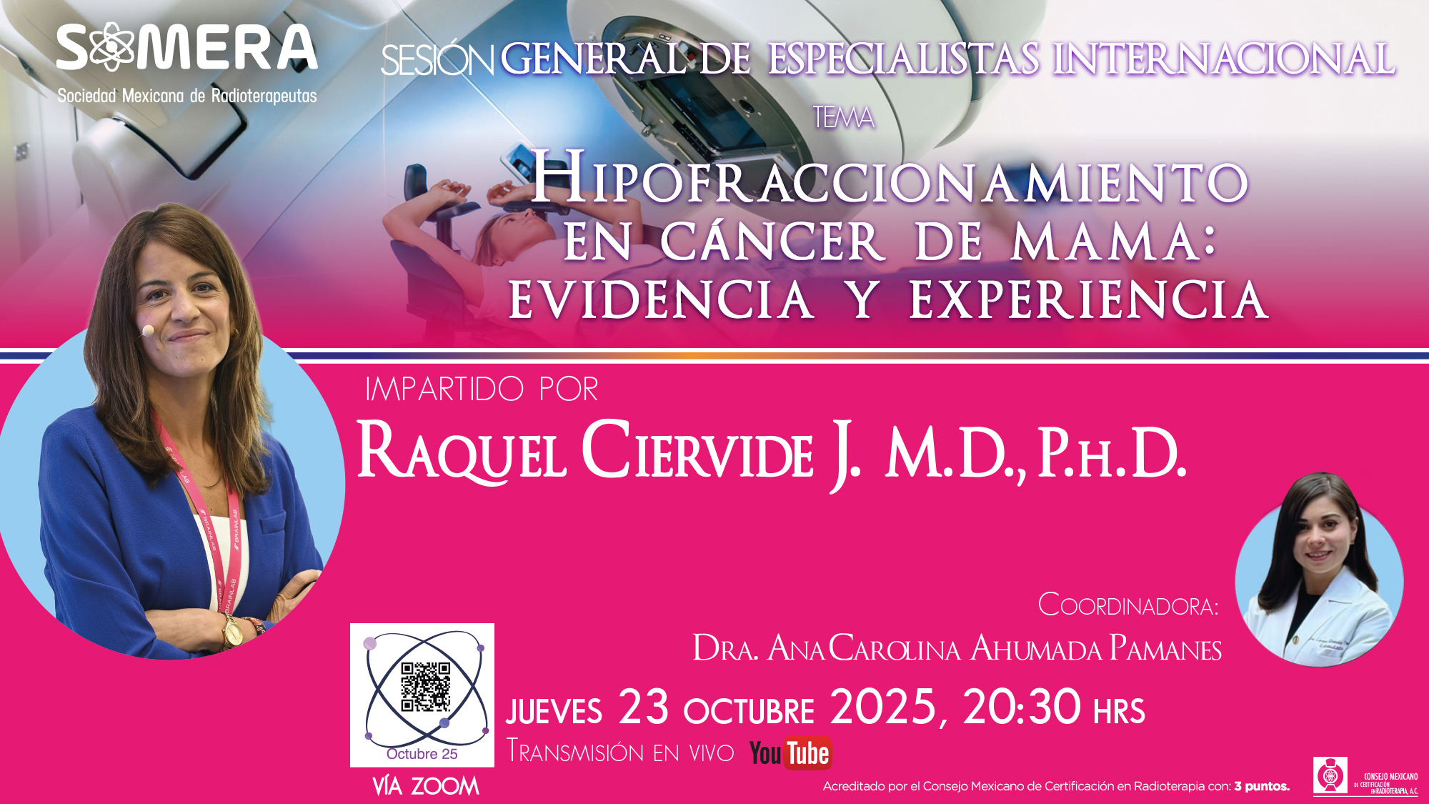 Evento Sesión Mensual SOMERA: “Hipofraccionamiento en cáncer de mama: evidencia y experiencia”. Sesión Mensual SOMERA: “Hipofraccionamiento en cáncer de mama: evidencia y experiencia”. 23-10-2025
